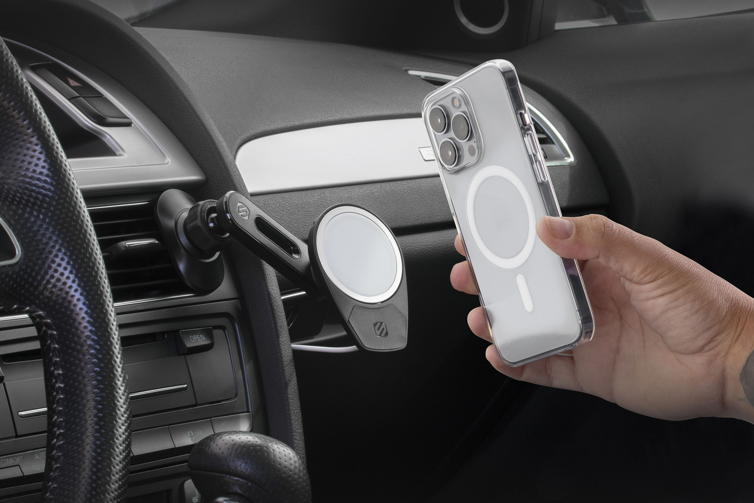 Figure 3: Scosche uses magnets to attach and charge Qi-enabled phones in vehicles