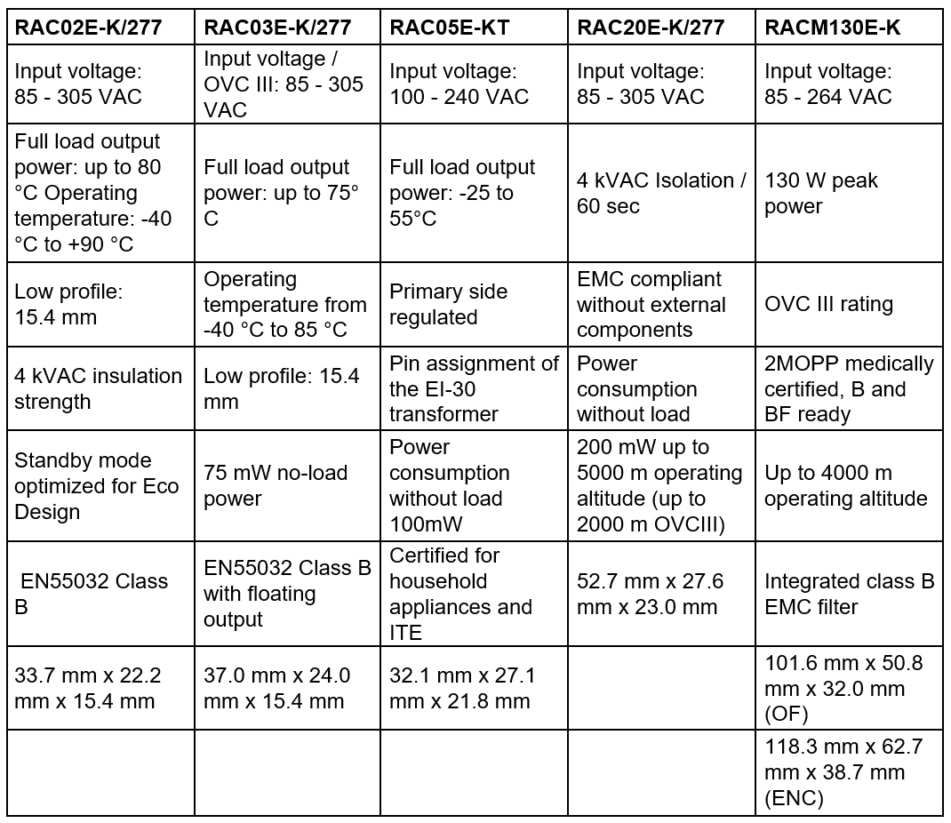 AC/DC converters, similar to sensors, processors, and actuators, are among the most widely used components. To meet the high demand, RECOM is launching the E-series in a compact form and at low prices – ideal for mass production. Economies of scale allow RECOM to achieve cost savings of up to 50% compared to similar products without compromising quality. The converters boast high efficiency over a wide load range, short-circuit, overload, and overvoltage protection, and UL/IEC/EN60950-1, 62368-1, 60335-1, and 60601- 1* certifications.