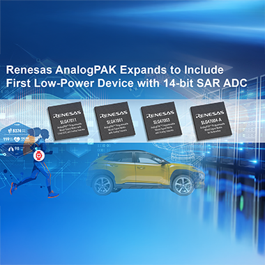 In addition to the SLG47011, Renesas is introducing two other AnalogPAK devices, the cost-optimised SLG47001/3, and the automotive-qualified SLG47004-A.
