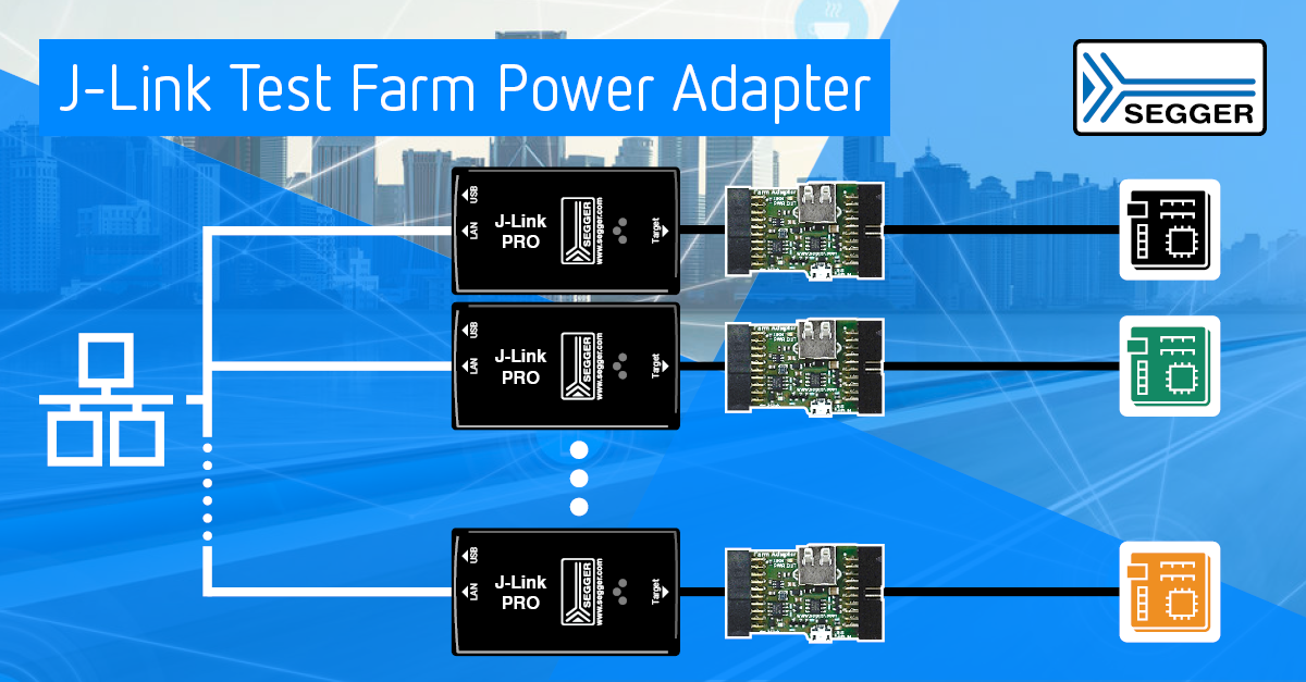 SEGGER’s energy-efficient J-Link PRO with Ethernet interface, combined with the test farm adapter, forms a foundation for any fully-scalable mass testing and debugging solution for embedded systems.