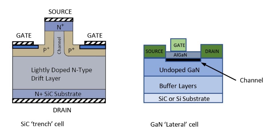 Figure 1: Comparison of SiC FET and GaN high electron mobility transistor (HEMT) cells