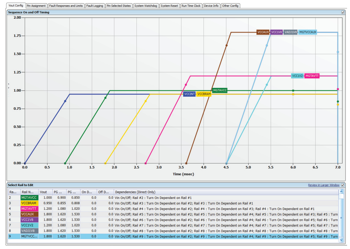 Figure 6: The UCD90120A, combined with a GUI establishes multiple sequencing scenarios (Source: TI application note)