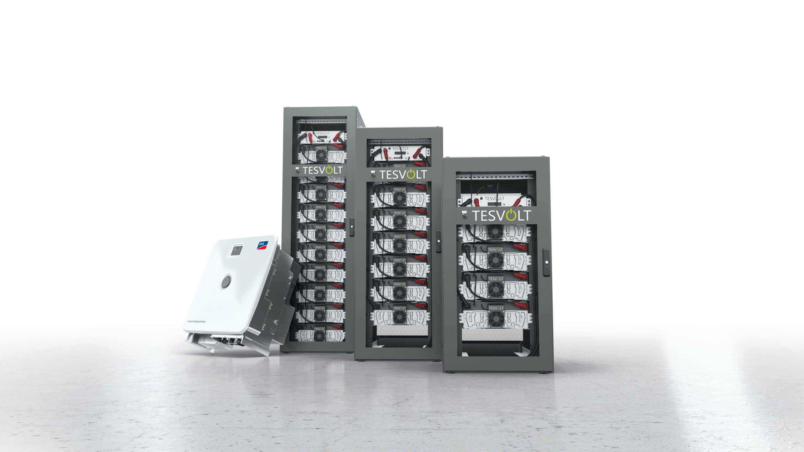 The new generation of storage systems consists of the TS HV 30 E, the TS HV 50 E, and the TS HV 80 E. The efficient high-voltage storage units are easily scalable. Combined, they achieve a total energy of up to 5-megawatt hours. The new three energy storage systems also incorporate advanced Tesvolt battery modules, each with 22 Samsung SDI cells of the latest generation. The high energy density of the battery cells makes these storage systems especially economical. New features include the Sunny Tripower Storage X three-phase battery inverter from SMA, which ensures even faster reaction and control times as well as a broad usable DC voltage range. And the energy storage systems can now be combined with two different energy management systems: the Basic or Pro model. Tesvolt offers a 10-year guarantee for the system and performance with the new storage systems.