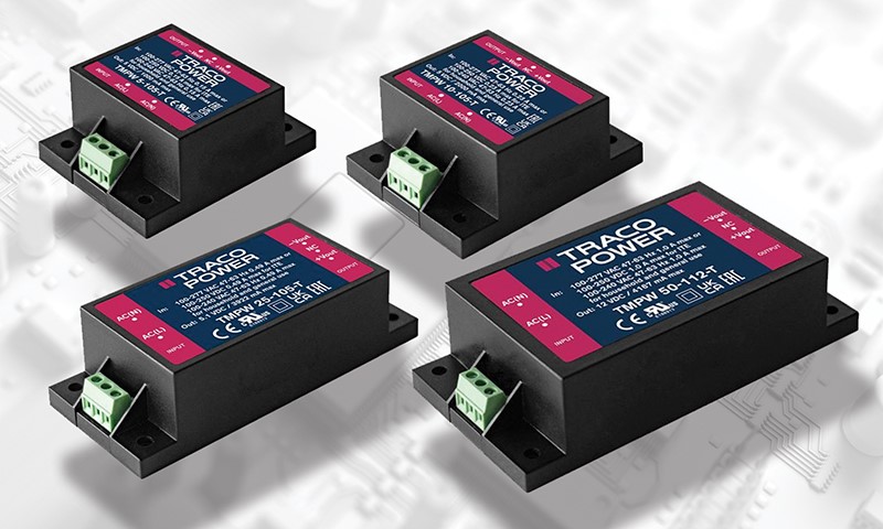 The TMPW family of 5~50 watt AC/DC modules are already available in both ‘PCB Mount’ and ‘Chassis Mount with JST Connections (suffix “J”).’ TRACO POWER has added the Screw Terminals (Suffix “T”) to simplify industrial and in-field installations. The following features make these suitable for a wide range of industrial and household/building technology applications: