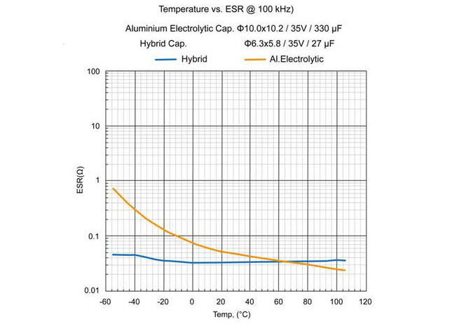 Several manufacturers have been combining solid and liquid electrolytes to produce hybrid components with ultra low ESR (low tens of milliohms), with minimal temperature variation, while increasing withstand voltage and accommodating high ripple current.