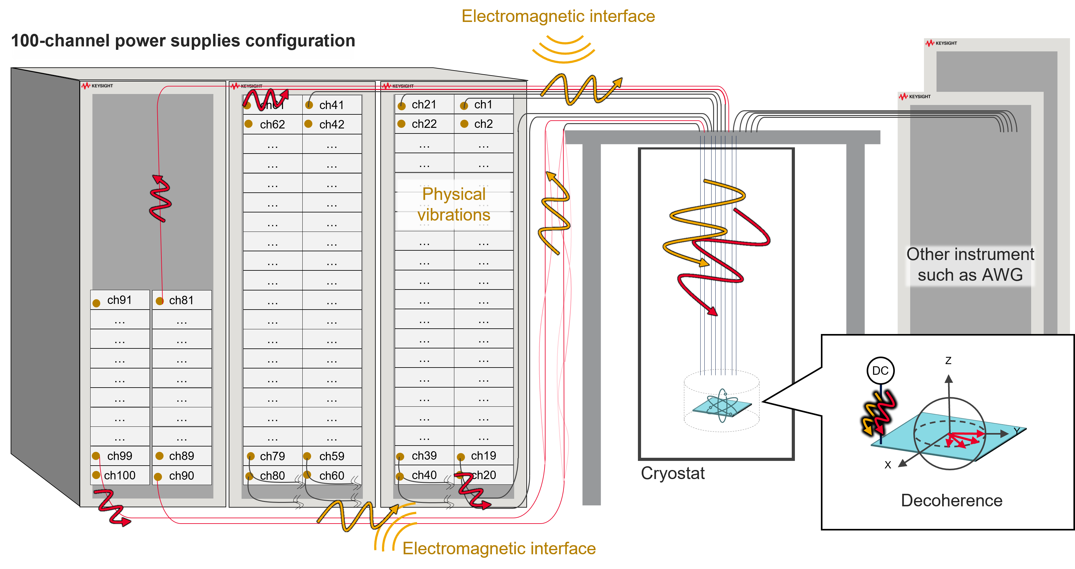 - Voltage fluctuations due to DC power supply noise and environmental interference through long cables induce qubit decoherence.