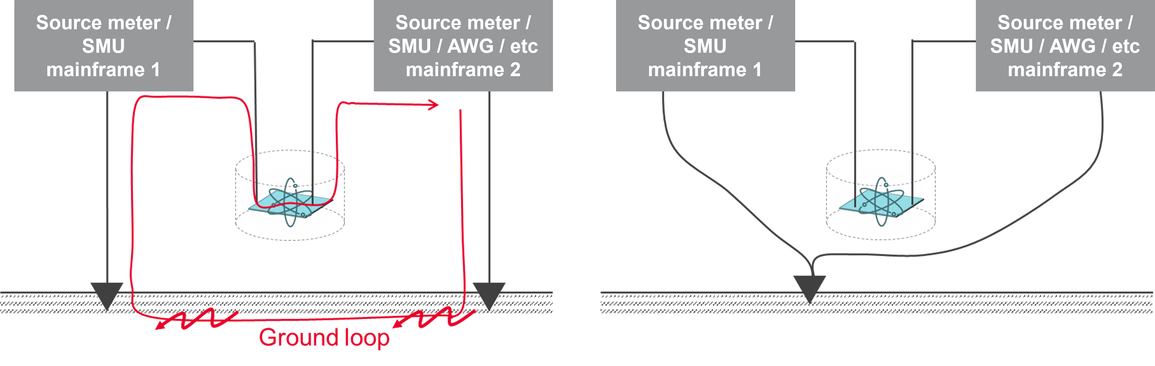 Figure 6. Examples of wiring that creates a ground loop (left) and avoids a ground loop (right)