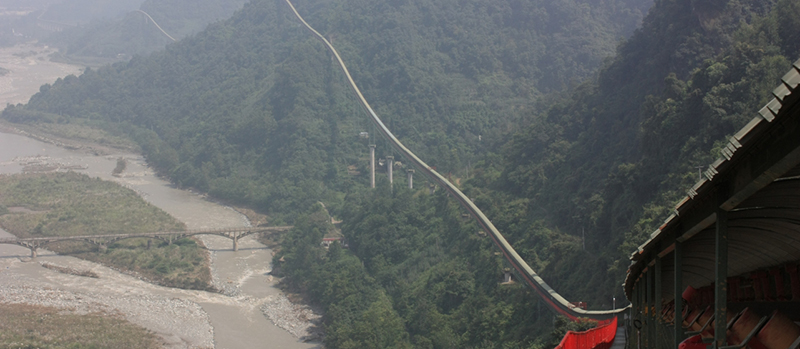 Trucks are still frequently used for greater distances. Depending on the nature of the terrain, however, they can rapidly reach their limits as they require well developed roads and fuel, for example. The costs arising for construction, maintenance and possible extension of these roads are not insignificant. In addition, all of this implies serious landscape changes. The emissions caused by truck traffic are high, both with regard to toxic substances and to noise and dust.