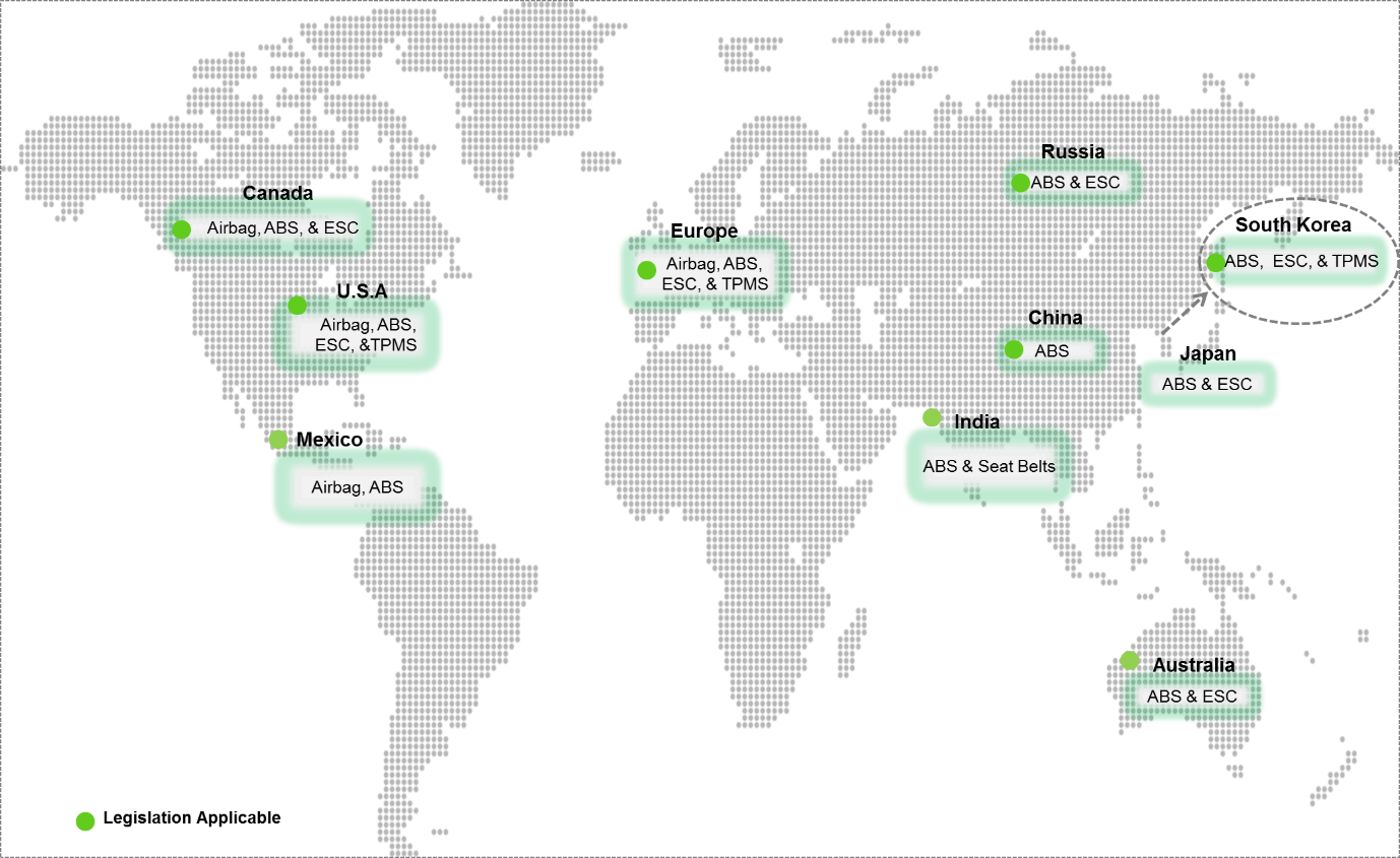 An emerging trend witnessed in the global automotive safety system market is the increasing demand from the countries like India, China, Russia and Brazil. Since the market for the safety systems like Airbags and ABS in developed economies is maturing and becoming saturated, OEMs and suppliers are focusing on increase demand from emerging markets. The demand is becoming higher in emerging markets primarily because of the improving road safety standards/supporting legislation and consumer awareness. Rapidly increasing vehicle population in emerging markets such as China, Thailand, Brazil and India is also driving up the risk of road fatalities and supporting demand for safety systems in passenger and commercial vehicles. Further, programmes like New Car Assessment Programe (NCAP) a government car safety evaluation programme which provides ratings, based on the safety performance of cars have become a catalyst for encouraging significant safety improvements initiatives from original equipment manufacturers, that drive consumer confidence and hence demand for Active and Passive Safety Systems.