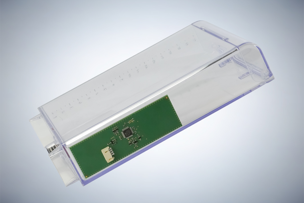 The level sensors can be attached outside of tanks or other containers and are capable of measuring through almost any non-metallic material. The standard measuring range is up to 100mm and can be extended as needed on request. Nevertheless, the sensor is very compact and suitable for small installation spaces.
