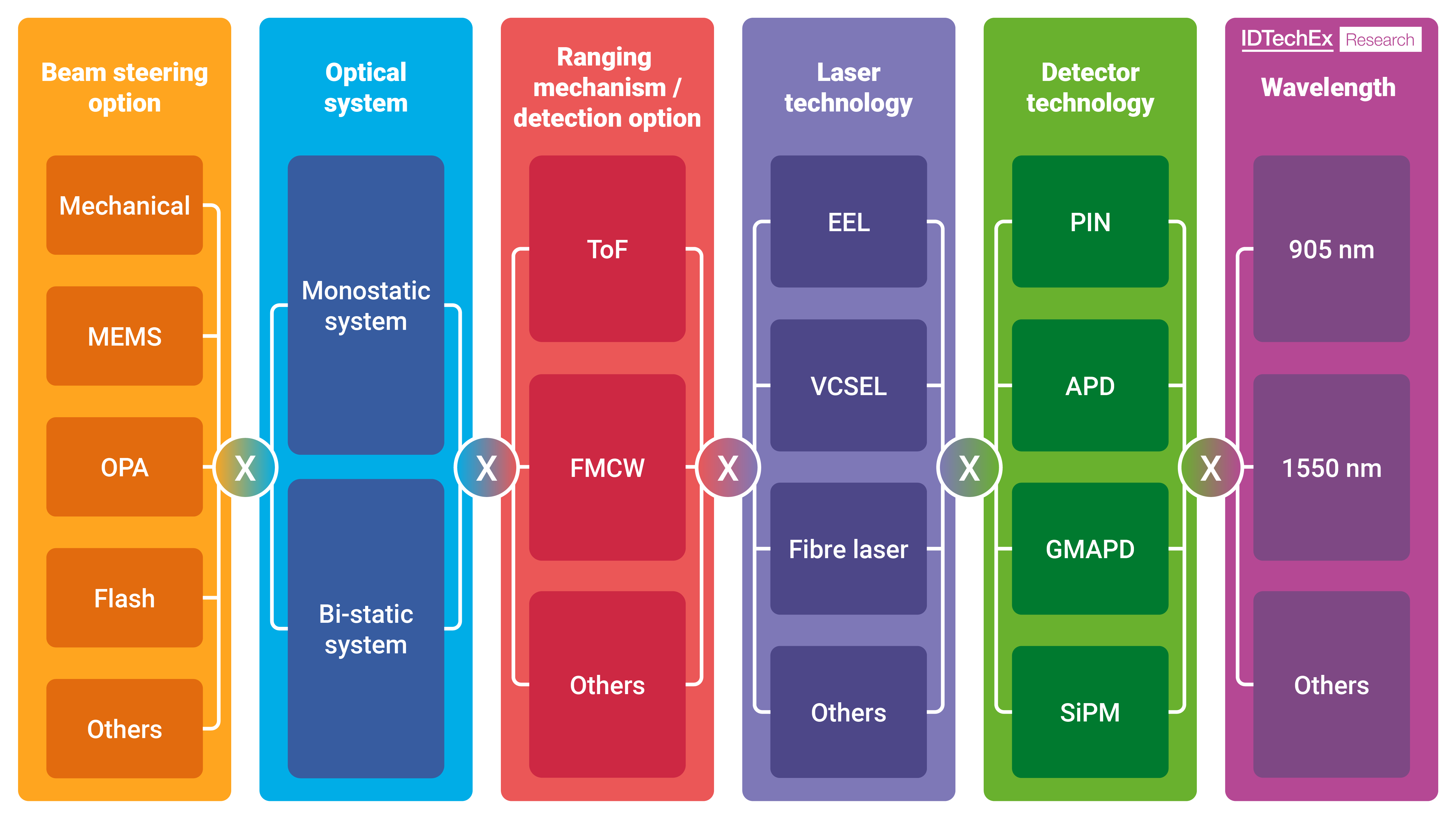 Various LiDAR technology combination possibilities. Source: IDTechEx