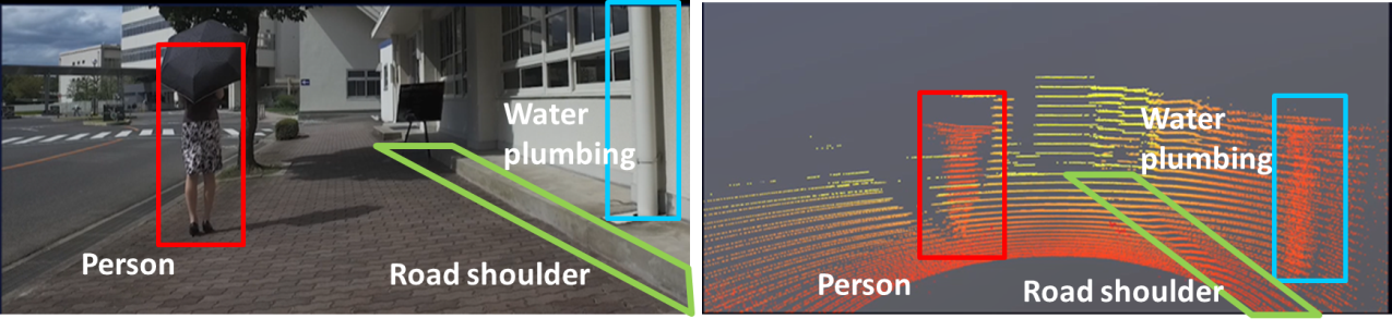Picture 3: Example of detection image under strong sunlight: left image by camera; right image by Panasonic’s 3D LiDAR