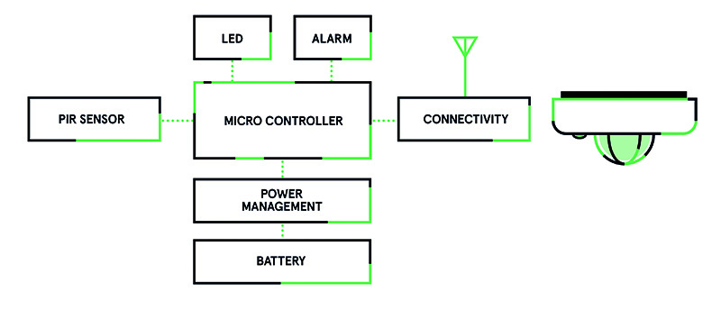 Another very popular use for PIR detection is in alarm systems to detect intruders. They are difficult to tamper with, as the intruder will be detected while they are still metres away, long before they can reach the sensor and disable it. In fact, in a connected system, the same PIR sensor could be used to turn the lights on and, when the building is unoccupied, detect intruders.