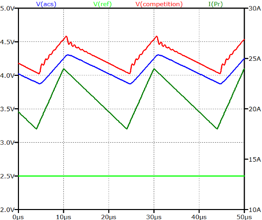 Figure 1: Comparison of ACS37002 stable output response vs a competing device
