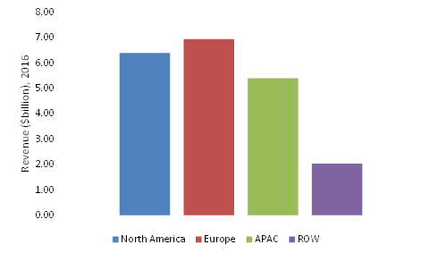 European smart sensor market held the largest revenue share of $6.93bn dollars in 2016