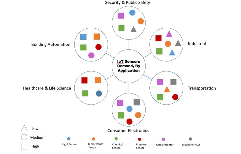 According to MarketsandMarkets analysis, the overall IoT sensors market was valued at $3.34bn in 2015 and is expected to reach $38.41bn by 2022, at a significant CAGR of 42.08% between 2016 and 2022. Key factors contributing to the growth of the IoT sensors market include the development of cheaper, smarter, and smaller sensors; popularity of smart devices and wearables; need for real-time computing of applications; and surge in demand for IoT sensors in various applications.