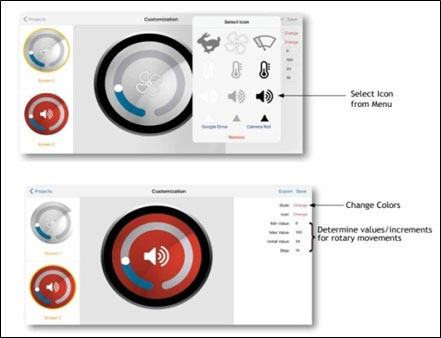 Using the tablet based development app, standard widgets on the Touch Encoder can be easily customised for specific applications.
