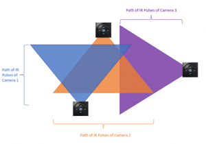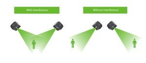 Multiple Camera Interferences occur when you have two or more TOF cameras operating in the same environment with the same frequency. The light transmitted from one camera will be received by another camera – resulting in depth errors and affecting the TOF functionality.