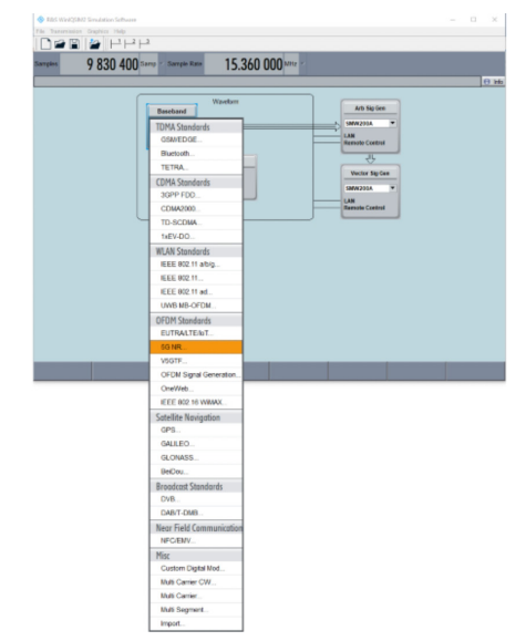 Figure 3. The simulation software R&S WinIQSIM2 supports a wide variety of wireless standards.