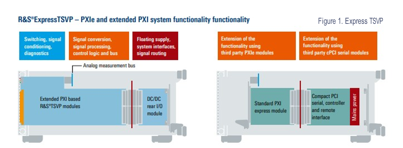 For testing of complex TCUs Rohde & Schwarz developed the R&SExpressTSVP based on PXIe/ PXI-1/cPCI bus for test and measurement tasks that require a flexible use of third-party PXIe modules.