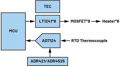 The ADN8835 that integrates the TEC controller is also available. The temperature control system diagram is shown in Figure 5.