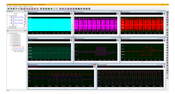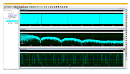 One example of applying the M5i series digitisers with a Star-Hub option is in the measurement of DDR memory timing. DDR memory devices use three data and timing signals: clock, data strobe, and the data signal itself. Figure 3 shows the acquisition of these timing signals using three Star-Hub linked M5i.3360-x16 single-channel digitizers, each sampling at 10GS/s.