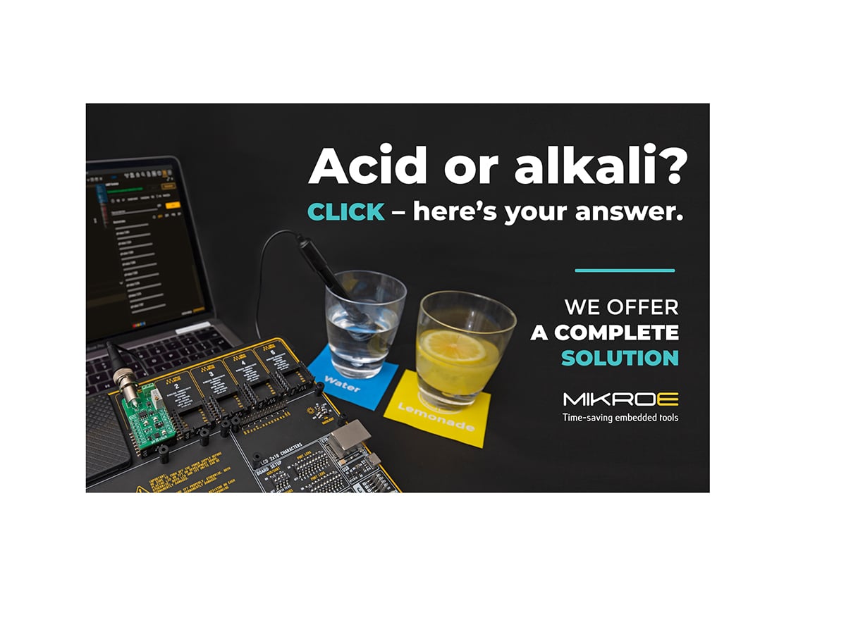Comments Nebojsa Matic, CEO of MIKROE: “By using a Click board developers can get a prototype design up and running in a very short space of time. We are constantly expanding our range of Clicks: for example, currently, we offer 18 different environmental Click boards, including pH 2 Click which is suitable for measuring pH in various applications, including water treatment, chemical processing, medical instrumentation, and environmental test systems.”