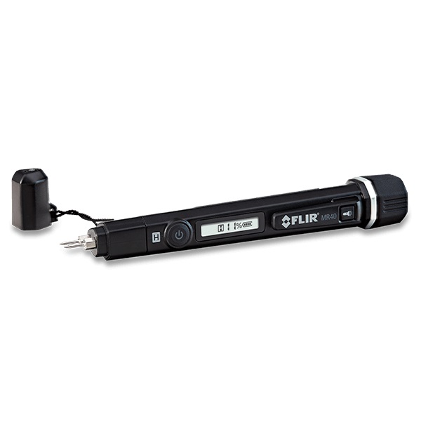 The FLIR MR40 is a rugged two-pin single scale moisture meter with an integrated flashlight providing a quick and reliable means to check for and quantify moisture content.