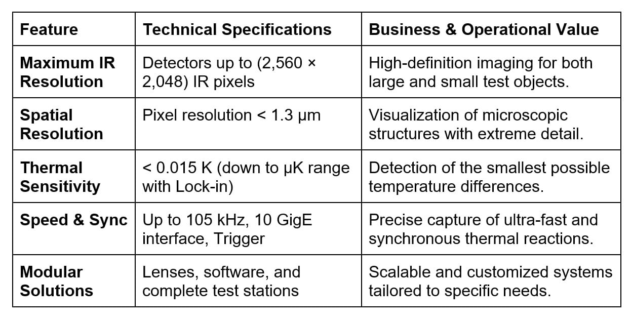 By utilising high-end ImageIR series infrared cameras, surface temperature changes are monitored during electrical activation to locate specific ‘hot spots’. This technology enables the detection of minute thermal anomalies in the millikelvin (mK) or microkelvin (μK) range, making it possible to identify critical defects such as point and line short circuits, oxidation, and internal faults in transistors or diodes.