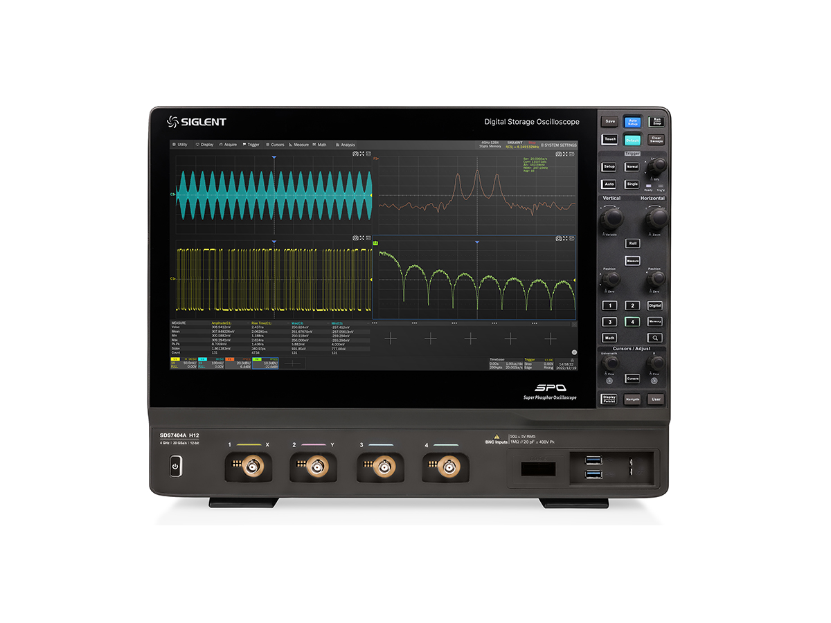 The Siglent SDS7000A series of high-bandwidth, high-resolution oscilloscopes consists of two models: SDS7404A (4GHZ) and SDS7304A (3GHz).