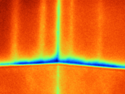 Thermal imagers are very effective tools for identifying moisture. Water has a high thermal capacitance, meaning that it efficiently absorbs and stores energy. The thermal capacitance of water or the effects of evaporative cooling (usually a 2°C to 5°C surface temperature difference) help reveal the extent of moisture damage, even when the surface feels dry to the touch. All suspected moisture should be validated with a moisture meter.
