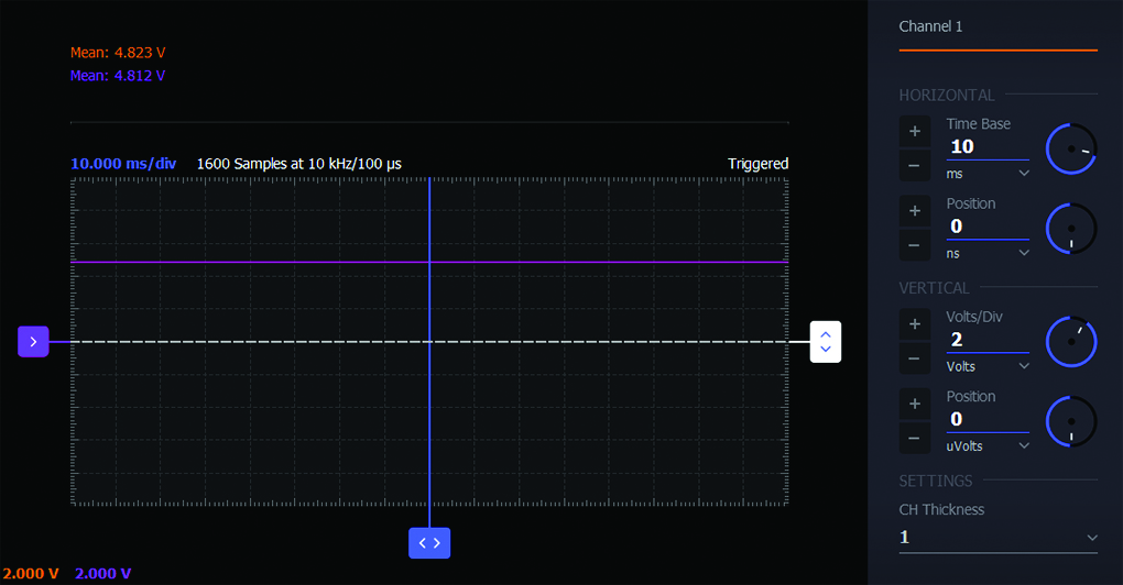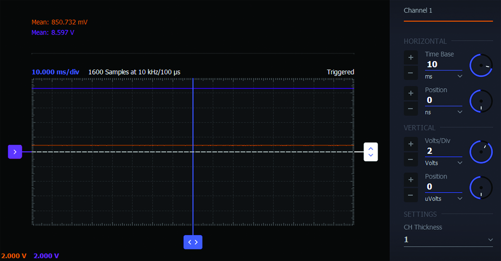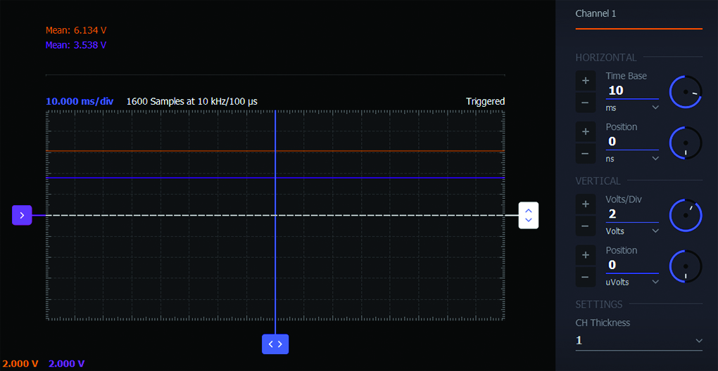 Monitor and report the load voltage VL by using the Scopy Voltmeter instrument to measure VL for RL equal to: