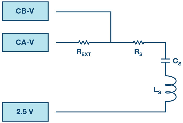 1. With a resistor REXT = 1kΩ connected between CA-V and CB-V, connect a 470Ω resistor as RS between CB-V and the fixed 2.5V