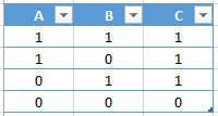 Every logic expression can be described with the truth table. Truth table numerates every possible input value and every possible output value using Boolean functions. Every TRUE correspond to logic “1”, every FALSE correspond to logic “0”. So if we will consider the logical statement , that means is true (“1”), if is true (“1”) is false (“0”), otherwise is false (“0”). Truth table for this statement shows every possibility of this statement in its logical representation, i.e.