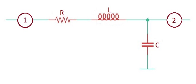 The simplest model of the interconnect with interconnect related resistance, capacitance and inductance is depicted below.