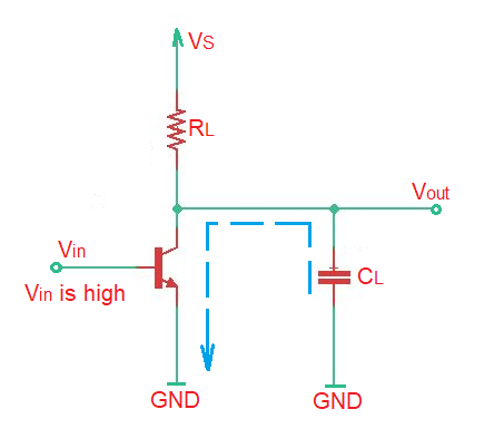 When the MOSFET is ON, the load capacitor discharges through the MOSFET resistance, and finally the capacitor voltage will reach the voltage level . (figure below)