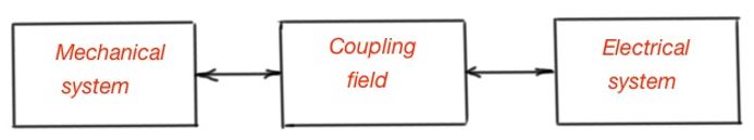 Let’s consider the electromechanical system that consists of the electrical part, mechanical part and the transforming part, making this transformation real. Figure below depicts how this energy coupling works. All three parts of the system are characterised by the losses – for the electrical system it’s resistance, for the mechanical system it’s friction, for the transforming part it is eddy currents and hysteresis losses.