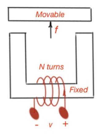 Electromechanical systems can also supply energy or store it. One of the types of transducers are moving-iron transducers, like solenoids, electromagnets and relays. The electromagnet consists of two parts – the fixed and movable part. The movable part can be displaced by the magnetic force. The equation of the energies in this system states that the small amount of energy is  dWm=idtfdx=dλdtidtfdx=idλfdx