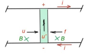 Then the conducting bar velocity and the current is u=u0cos(ωt+θu), i=i0cos(ωt+θi).