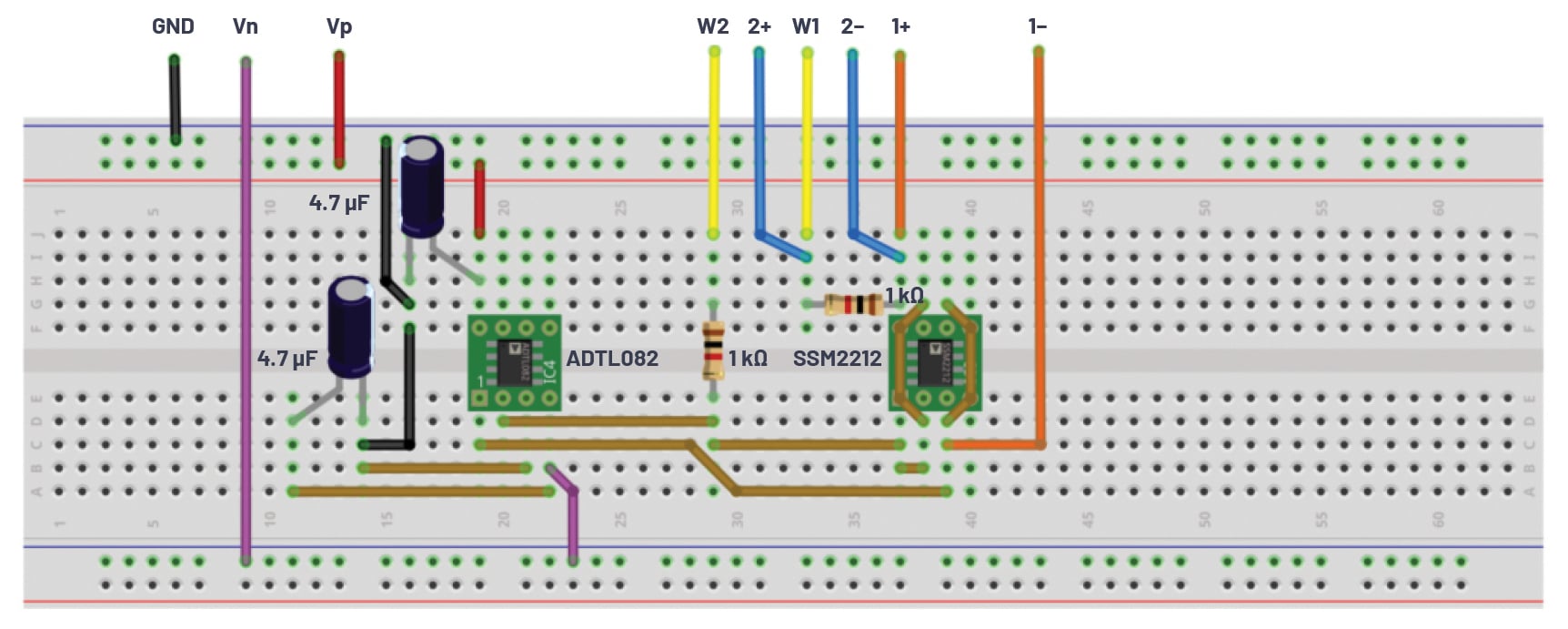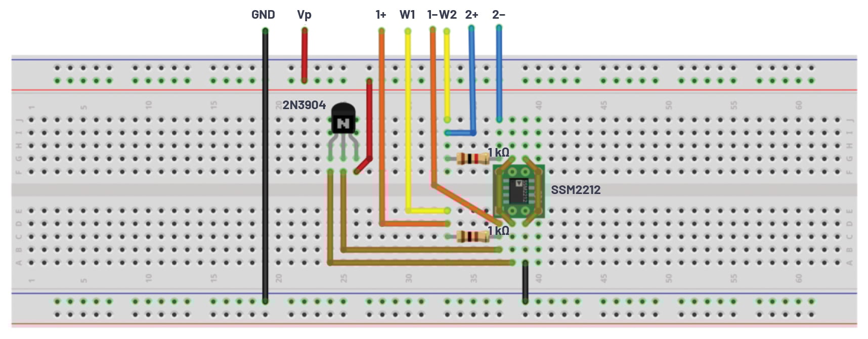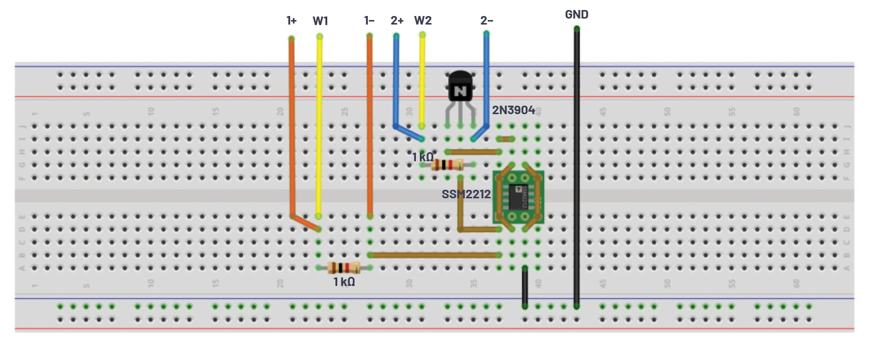 • Two small signal NPN transistors (2N3904 or SSM2212)