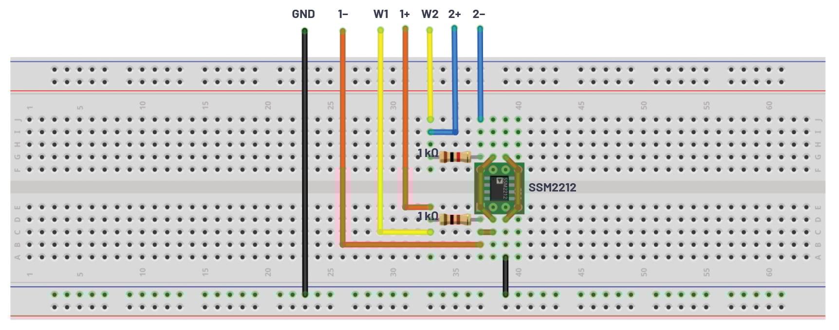 • Two 1kΩ resistors (values matched as closely as possible, or measured to three digits or better)