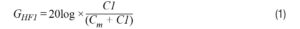 Open the saved data file in a spreadsheet program and scroll to near the end of the data at high frequencies (>1MHz) where the attenuation level is essentially flat. Write down the magnitude; this is GHF1 (in dB). Since we now know GHF1 and C1, we can use the following equation to calculate Cm. Write down your Cm value which we will need when we move to the next step and measure the capacitance of various diode PN junctions.