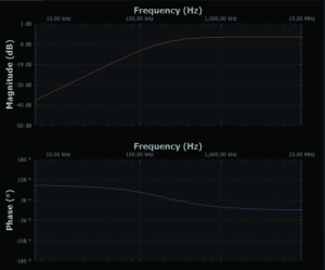 Using the network analyser instrument in the Scopy software obtain a gain (attenuation) vs. frequency plot from 5kHz to 10MHz for each AWG 1 DC offset value in Table 1. Export the data for each sweep to a different .csv file.