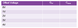Fill in the rest of Table 1 with the GHF value for each offset voltage value and using the value for Cm and the equation from Step 1, calculate the value for Cdiode.