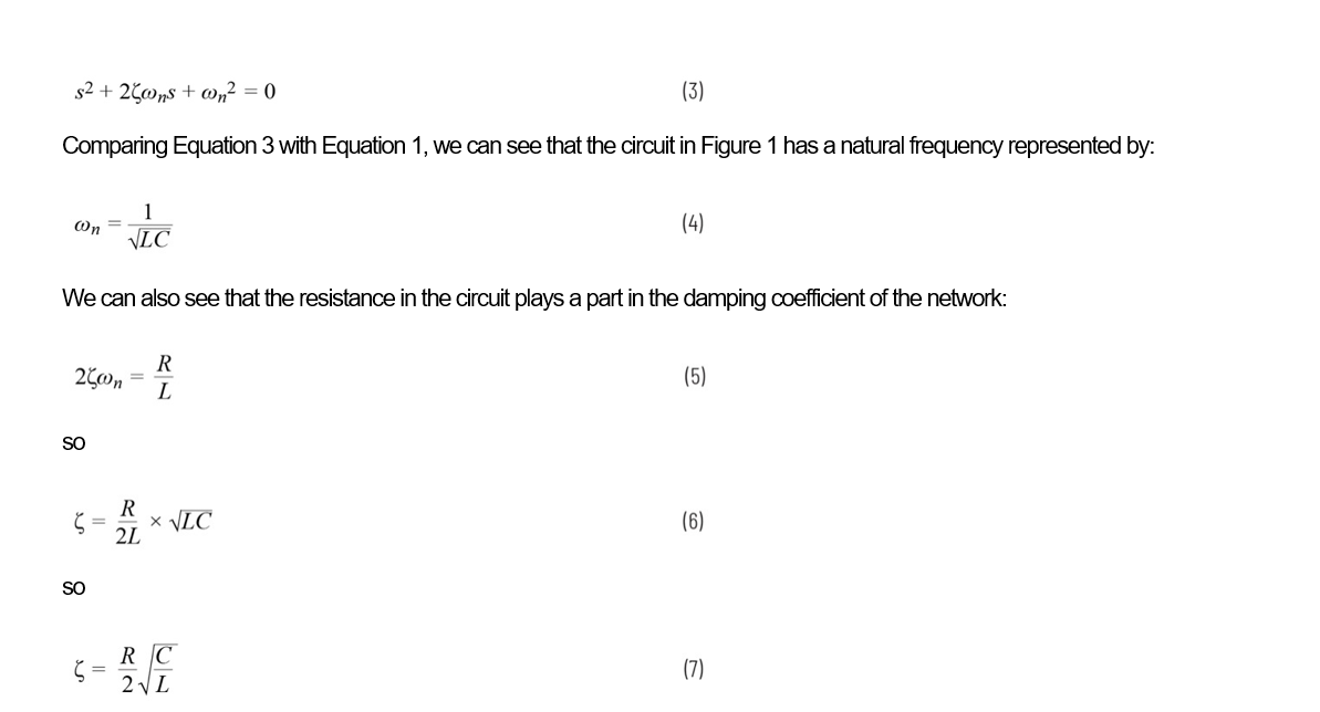 Where ζ is the damping coefficient and ωn is the circuit’s natural frequency (or undamped frequency) of oscillation in radians per second.