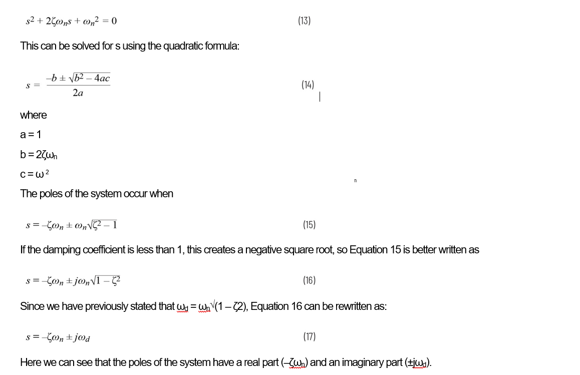 Here we can see that the poles of the system have a real part (–ζωn) and an imaginary part (±jωd).