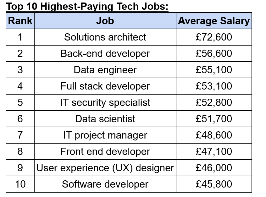 A new study has unveiled the highest-paying tech jobs in the UK in 2024.
