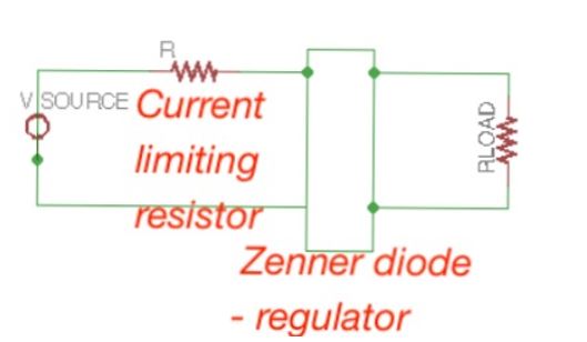 Here below is depicted how a Zenner diode operates as a voltage regulator. From this scheme we can see the main points of characterising a Zenner diode as a regulator: