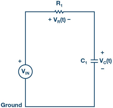 where is the applied source voltage to the circuit for , and is the time constant.