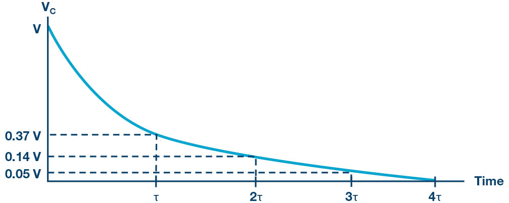 Where is the initial voltage stored in capacitor at , and is time constant. The response curve is a decaying exponential as shown in Figure 4.